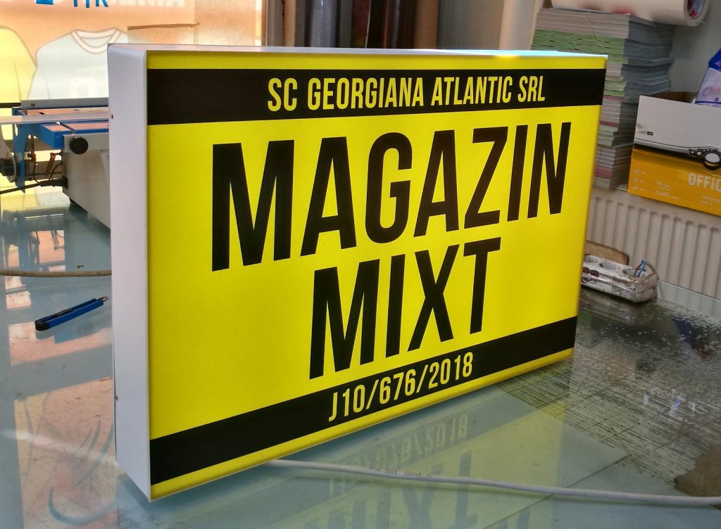 Casetele polyplan pot fi inscriptionate, ca si cele stiplex, simpla fata sau dubla fata. Polyplan-ul este printat cu cerneala Real-Solvent sau Eco-Solvent in functie de aplicatie: Indoor sau Outdoor. Garantia printului realizat de catre echipa noastra este de aproximativ 2 – 3 ani.